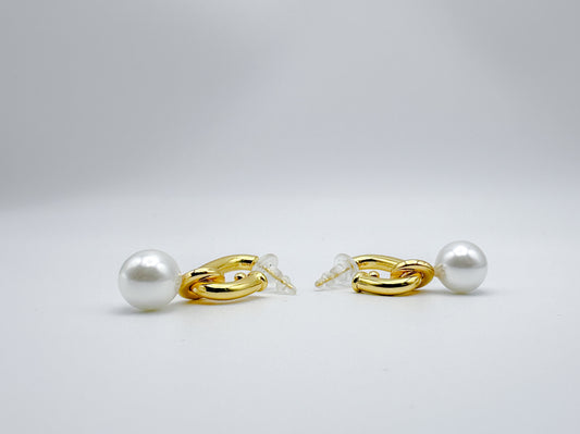 Acrylic Pearl Bead Drop Hoop Earrings Gold