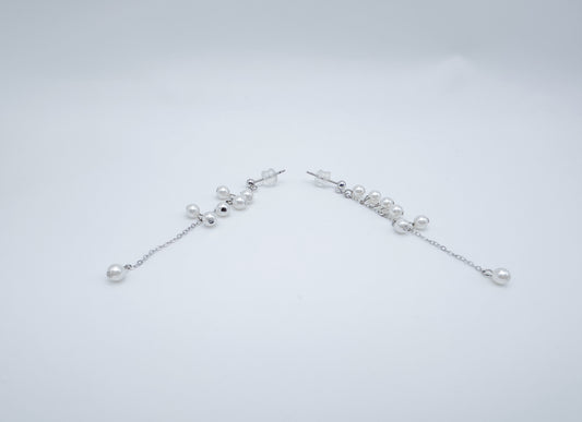 Ethereal Full-Silver Tassel Drop Earrings with Crystal Pearls