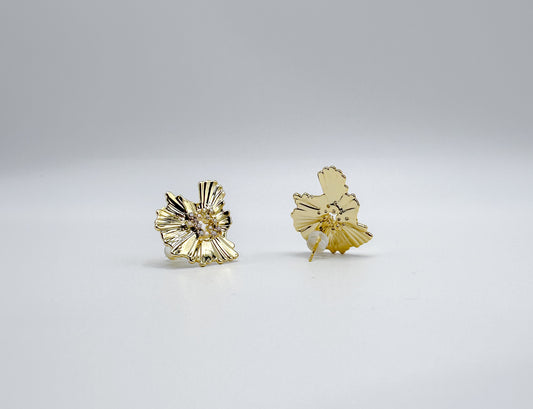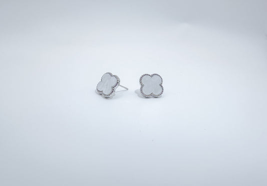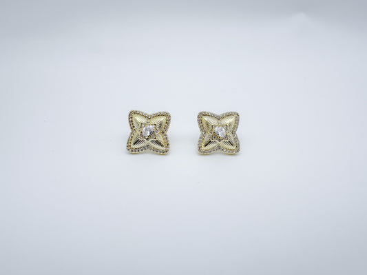 Golden French-Style Four-Leaf Clover Stud Earrings