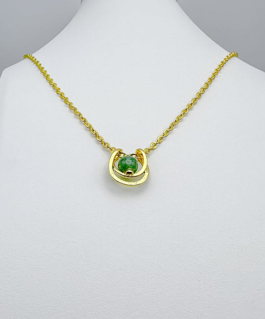 Green Aventurine Crystal Ball Pendant in Yellow Gold Necklace