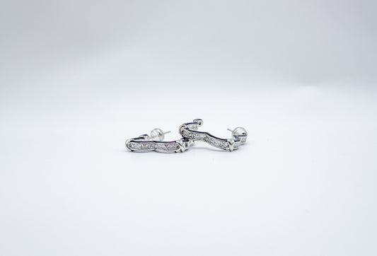 Folded Heart-Shaped Stud Earrings with Zircon Inlay