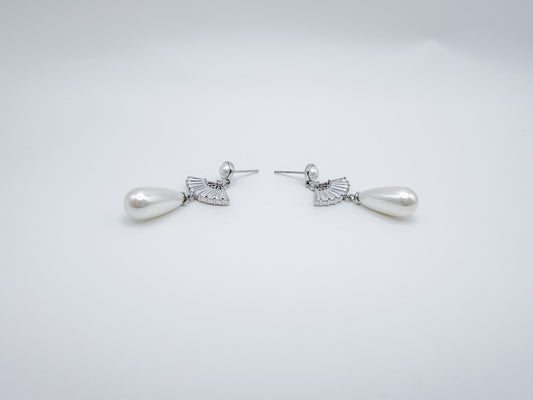 Elegant Fan-Shaped Drop Earrings with ABS Pearls