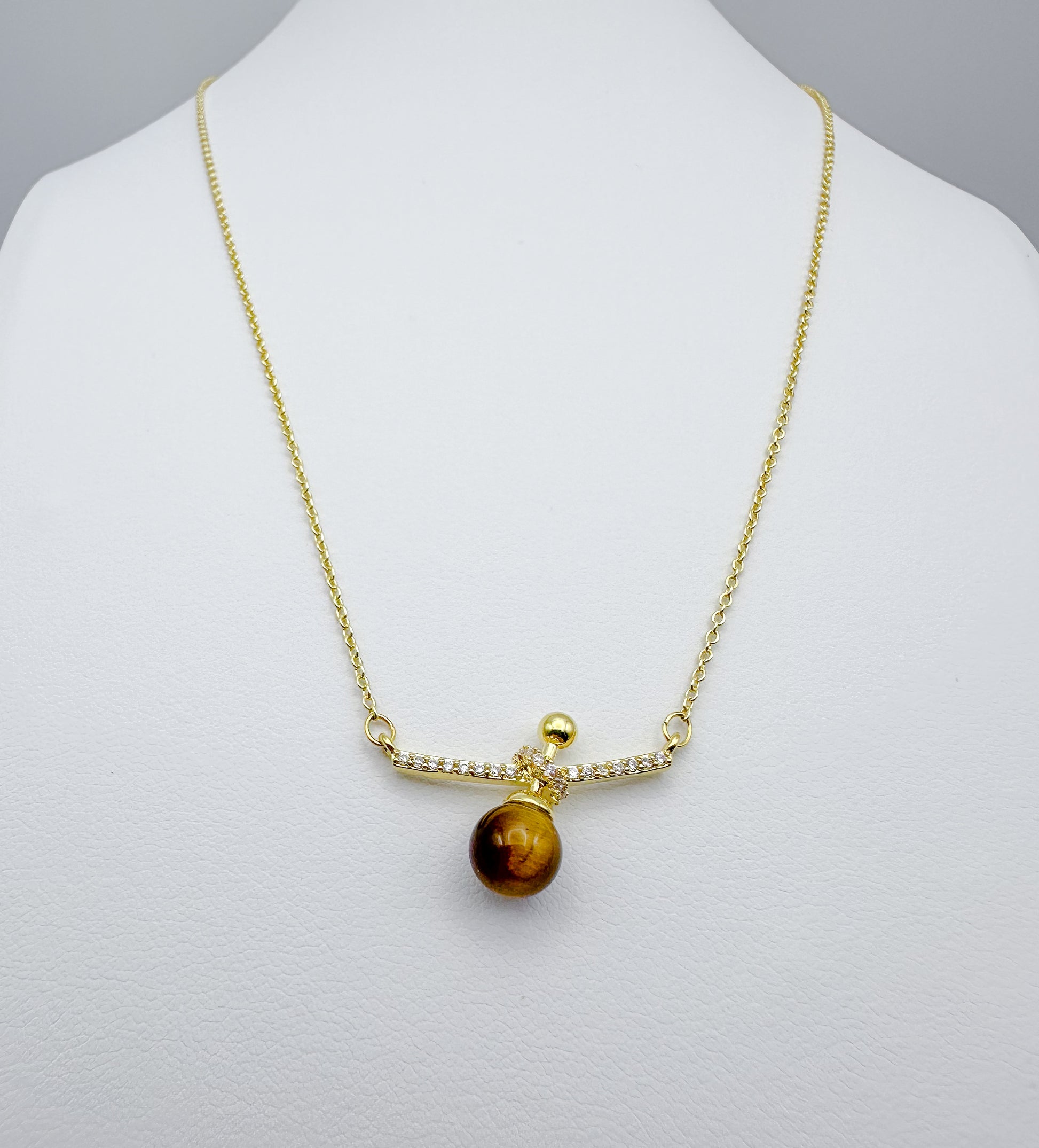 Amber Crystal Ball Pendant in Yellow Gold Necklace