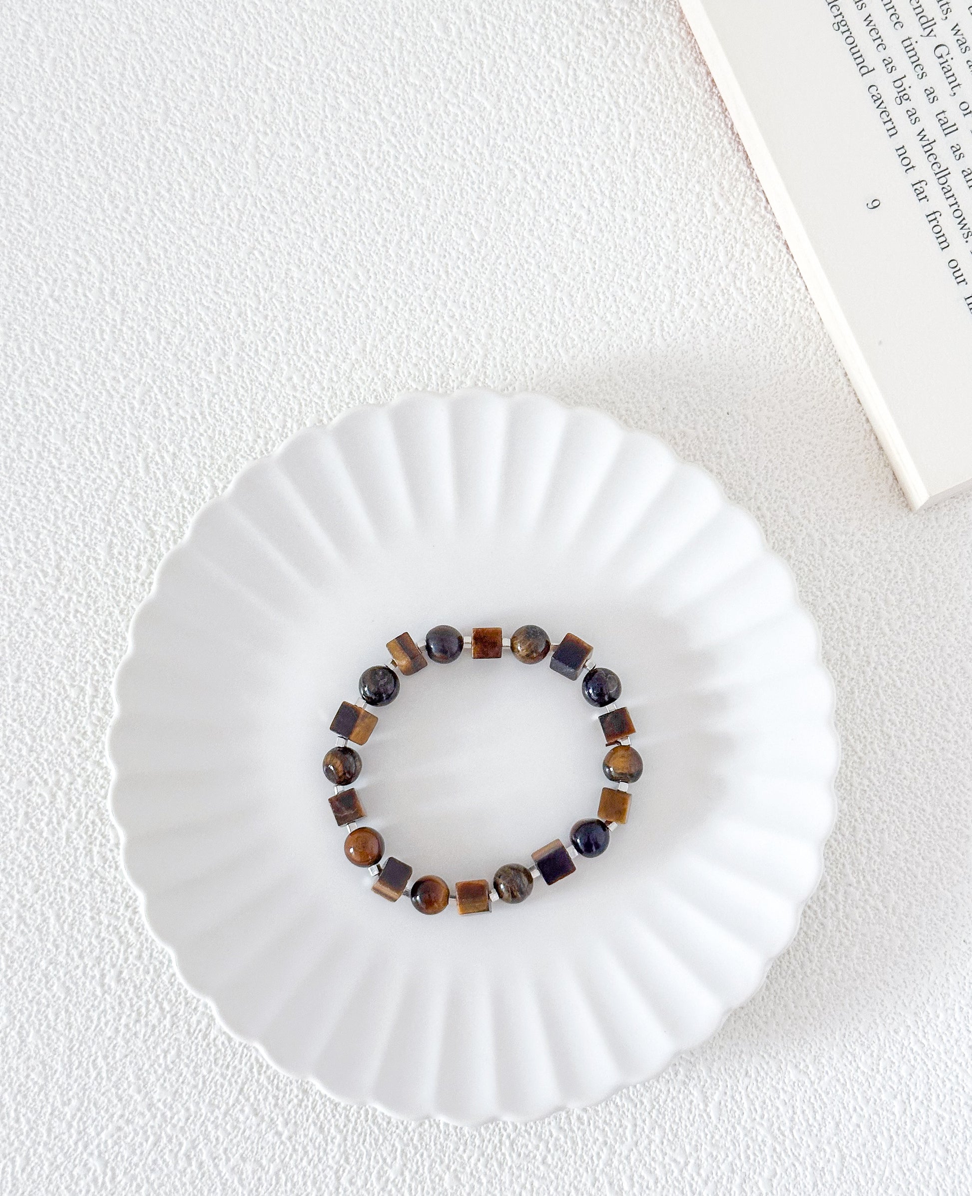 Tiger's Eye Round and Square Bead Gemstone Bracelet