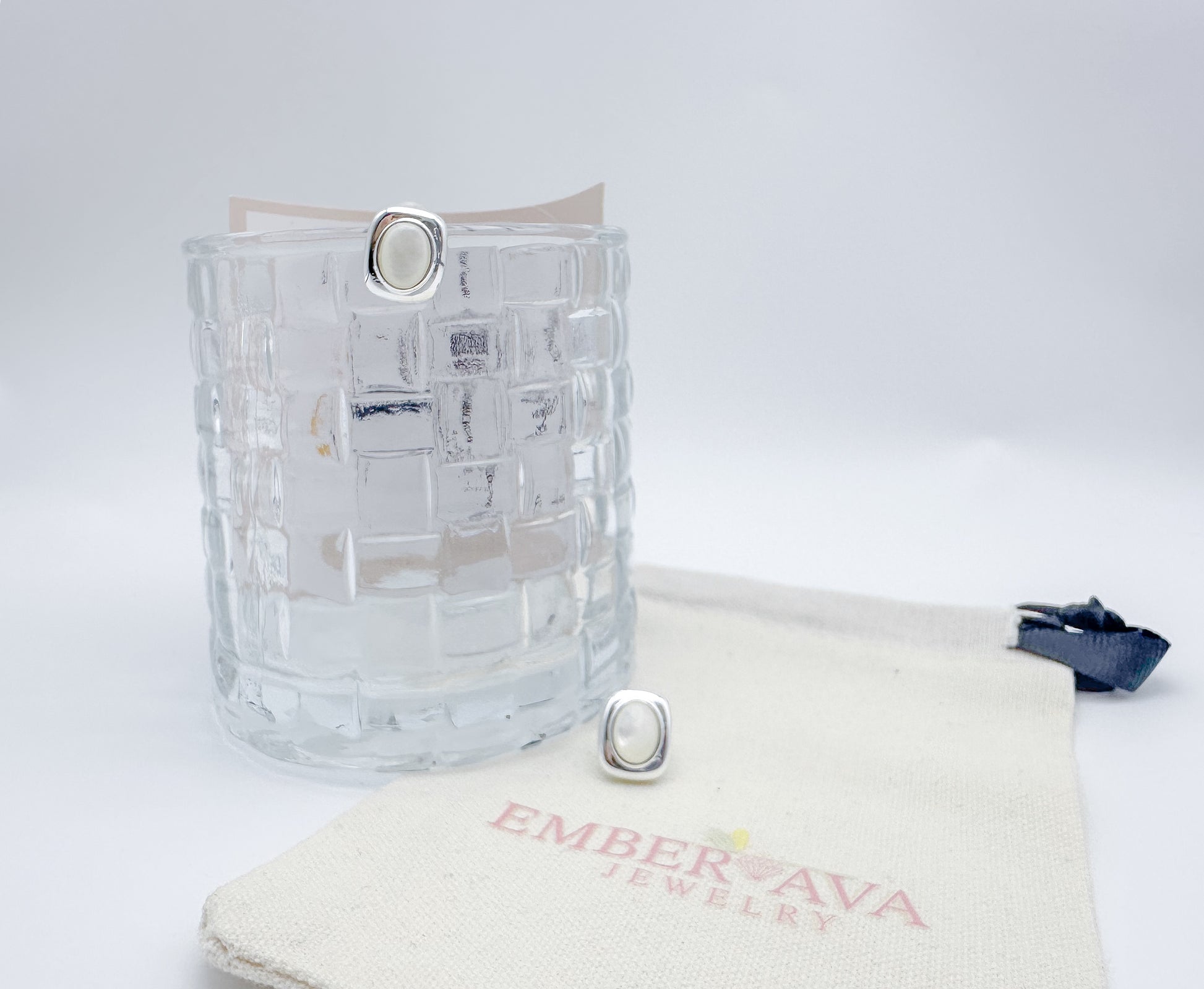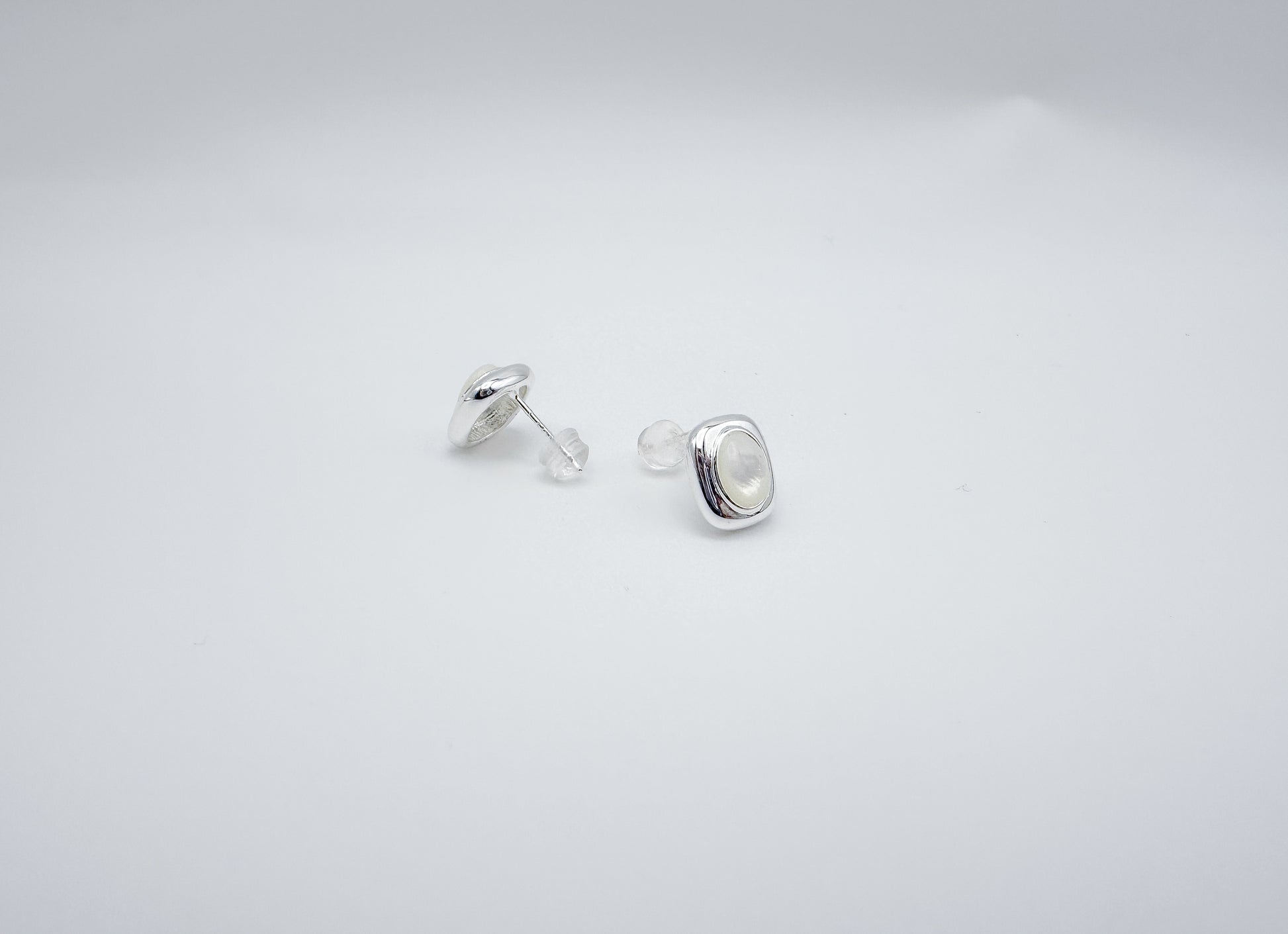 Refined and timeless, these stud earrings showcase a sleek square silhouette inlaid with natural, translucent mother-of-pearl. Finished with thick silver plating for a high-shine, polished look, they offer understated elegance with a modern edge. Mounted on S925 sterling silver posts, these earrings ensure lasting comfort and durability—ideal for both everyday wear and sophisticated occasions.