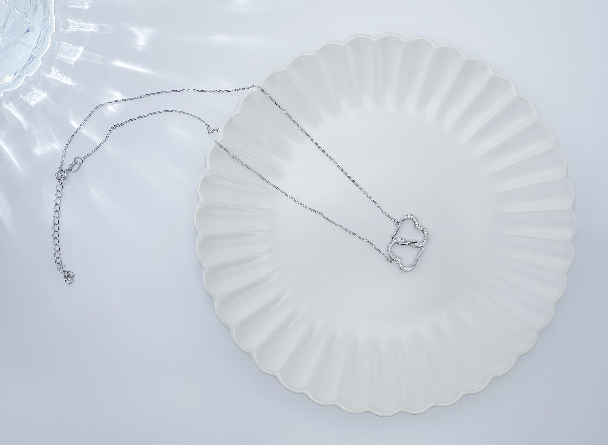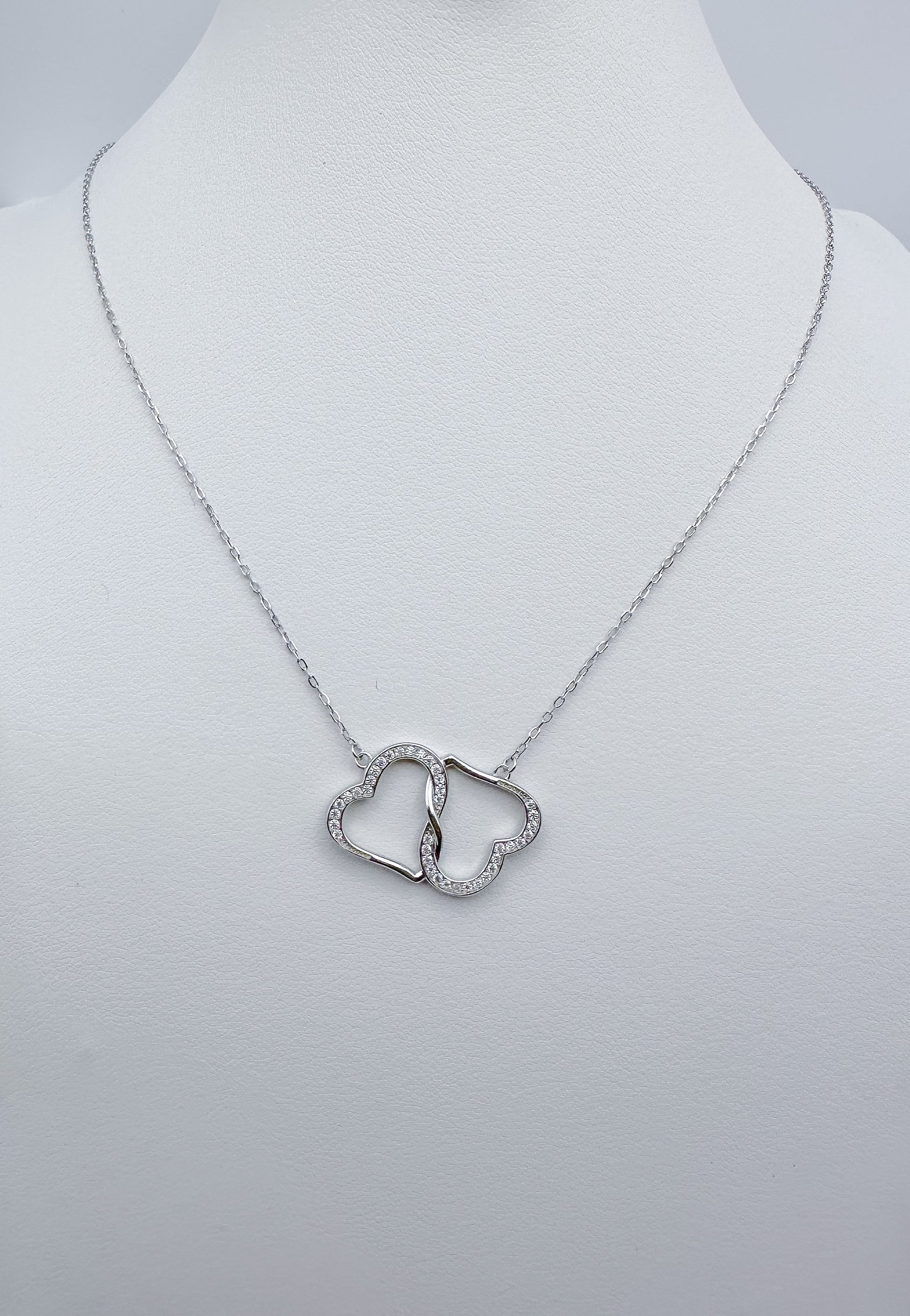 S925 Sterling Silver Intertwined Double Heart Zircon Necklace