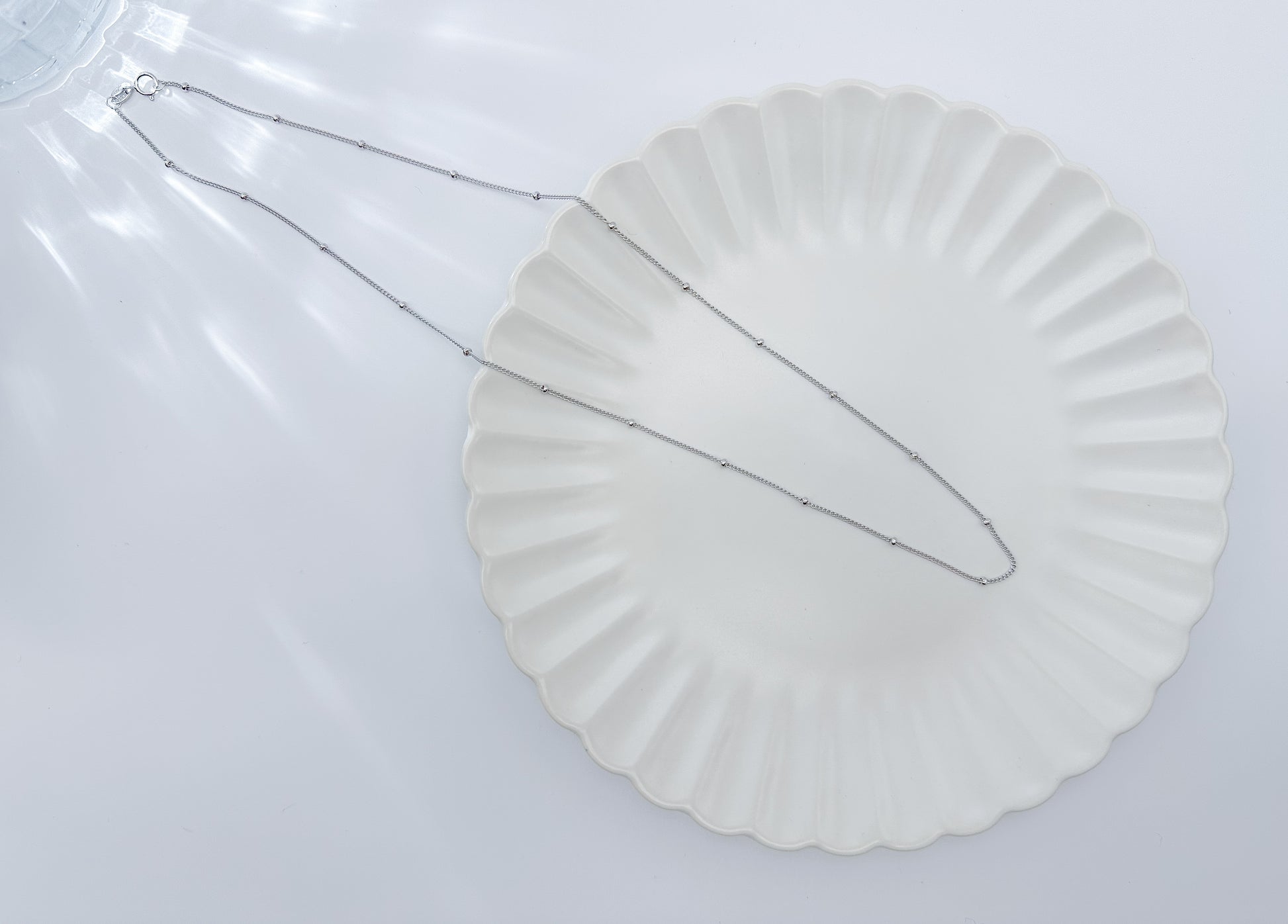 Understated elegance meets everyday versatility in this minimalist beaded station necklace. Expertly crafted from high-quality S925 sterling silver, the design features fine 2 mm round beads evenly spaced along a delicate 45 cm chain. Its clean, refined silhouette makes it ideal for solo wear or effortless layering with other favorites.