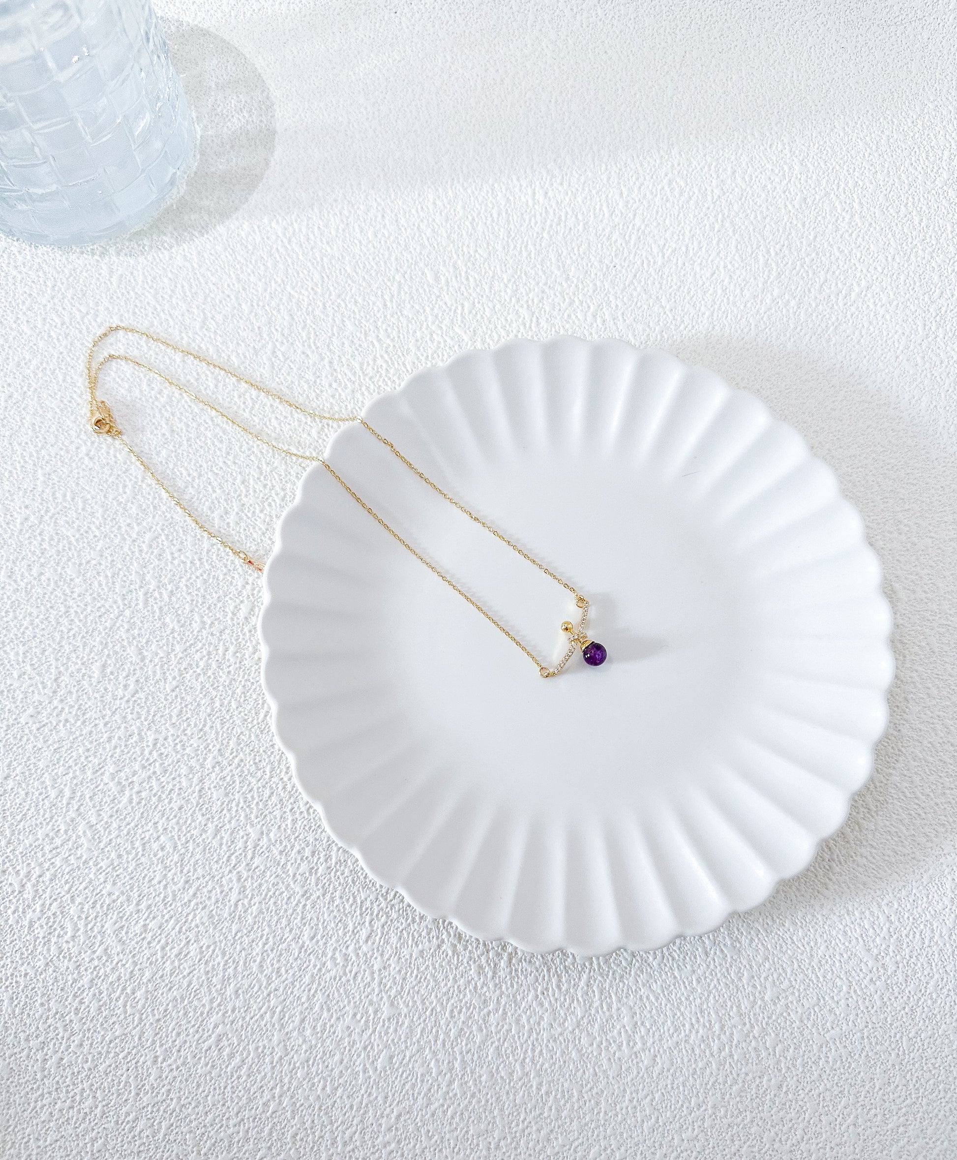 Purple Crystal Ball Pendant in Yellow Gold Necklace