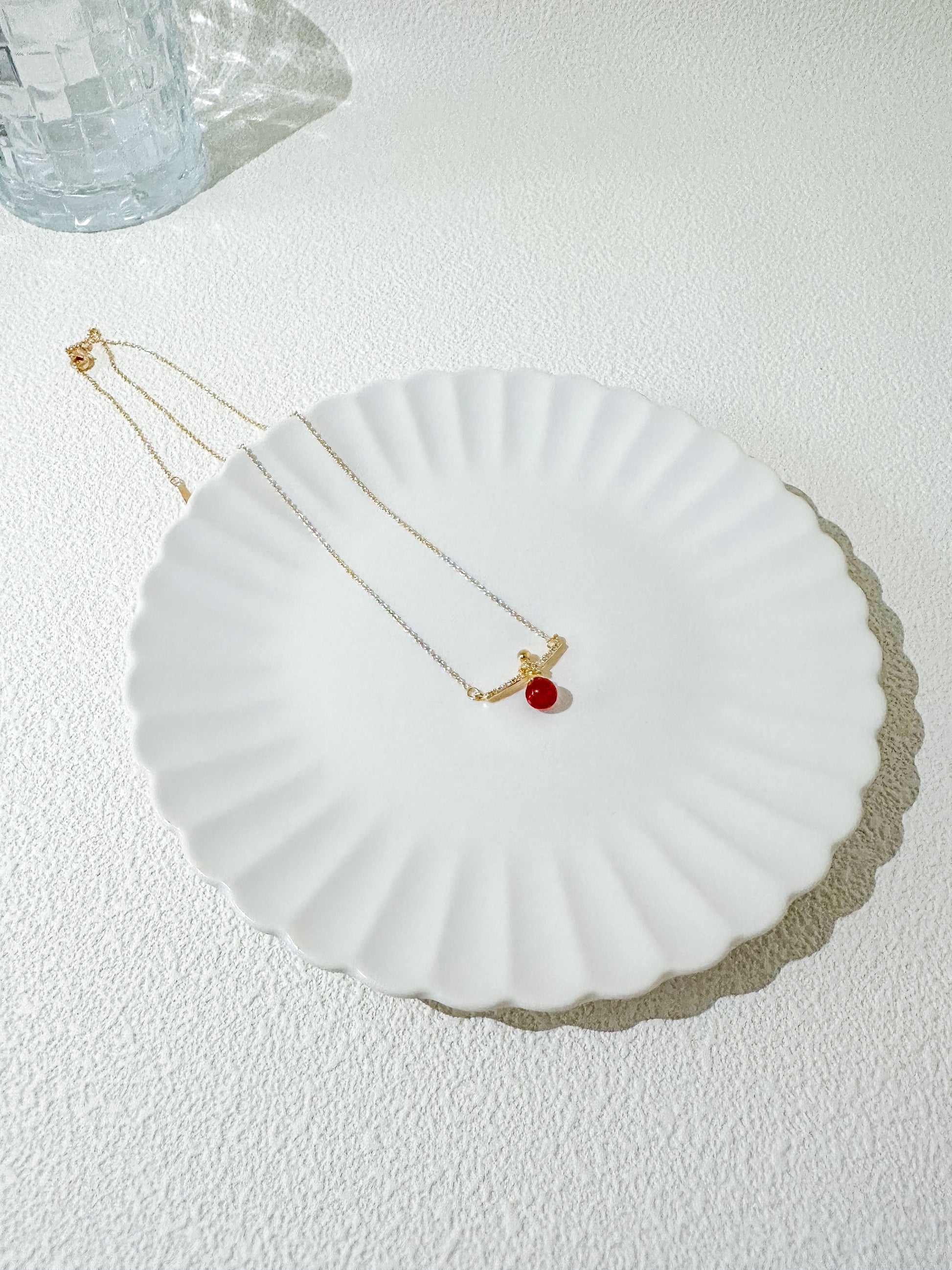 - Elegant Design: The U-shape pendant showcases a beautiful red crystal ball, radiating warmth and sophistication. Its unique shape adds a modern touch making it perfect for both casual and formal occasions.