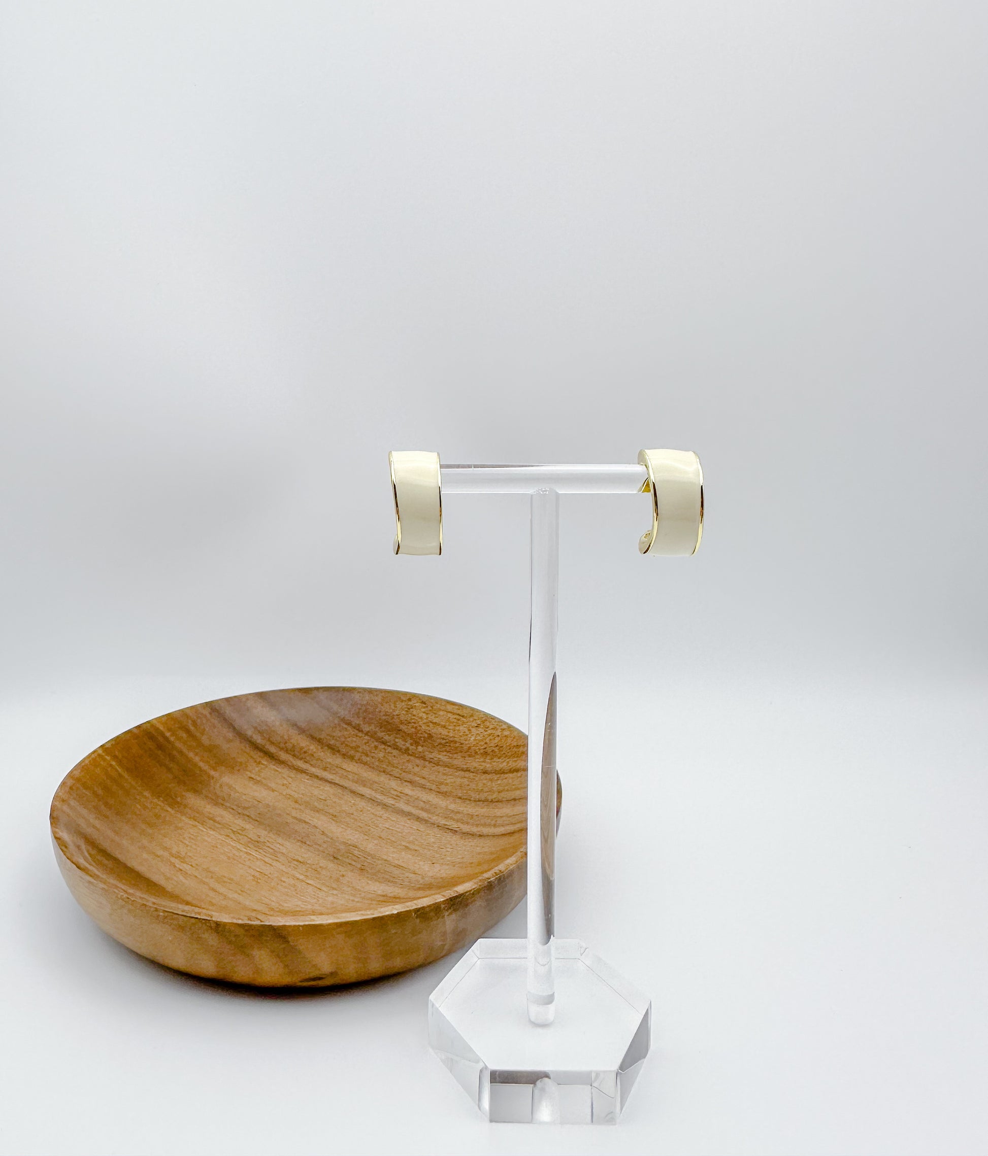 A sophisticated reinterpretation of classic hoops, the unique asymmetrical shape adds character and individuality, while the white accents provide a striking contrast that enhances the overall design.